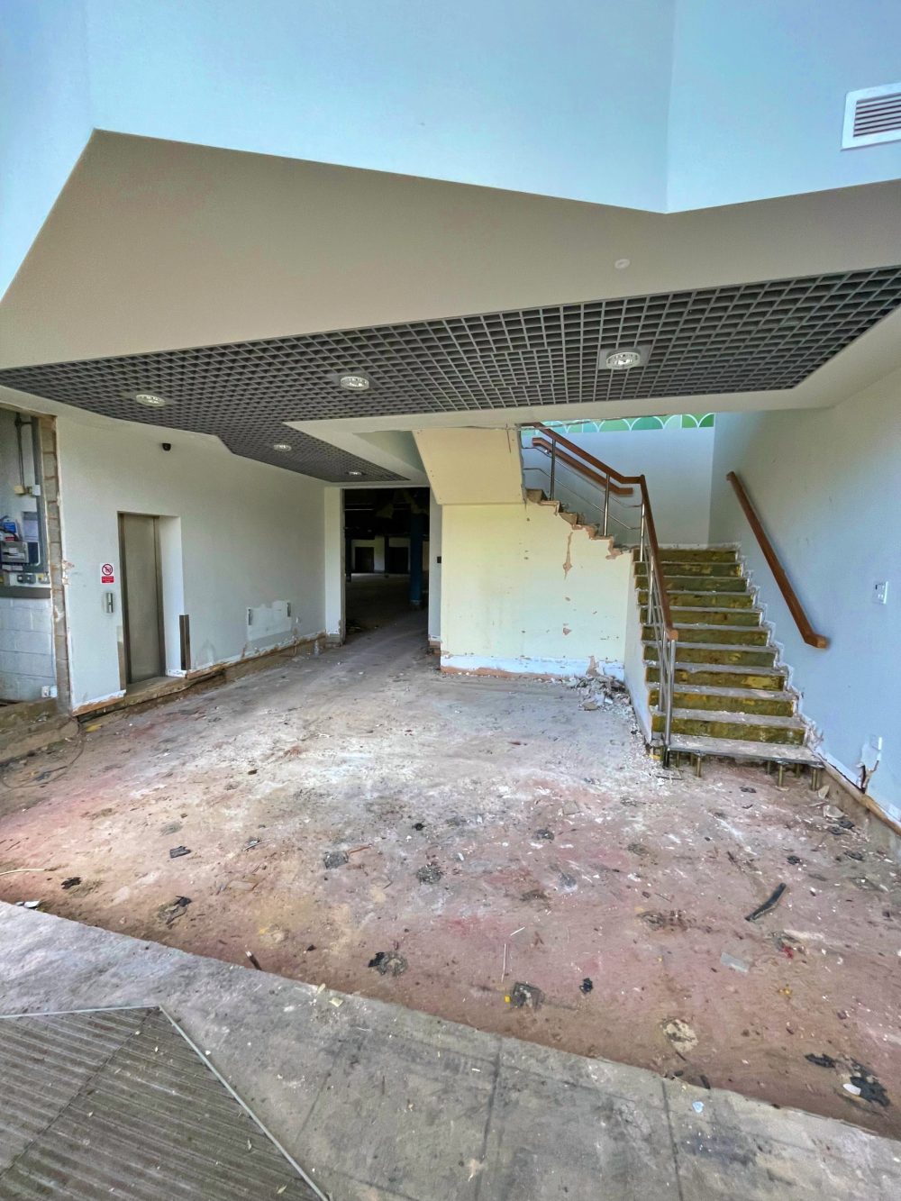 This 12-week project involved the complete strip-out of a two-storey office building, subdivided into three sections. The scope included the removal of all furniture, partitions, mechanical and electrical installations, and raised computer flooring. Prior to commencement, the fire prevention system had to be safely de-gassed. As power to the building was off and lifts unavailable, lifting equipment was used to lower the gas cylinders by stair, ensuring safe removal in line with regulations.