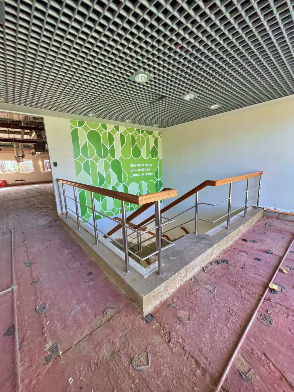Sustainability was a key feature of this project, with 18,000 carpet tiles and large volumes of computer flooring salvaged for reuse. Originally, a telescopic handler was planned for moving salvaged materials, but due to restrictions on glass removal, methods had to be adapted. RAMS were revised, additional operatives brought in, and the materials were manually transferred via stairs, ensuring compliance with client requirements and maintaining the programme.
